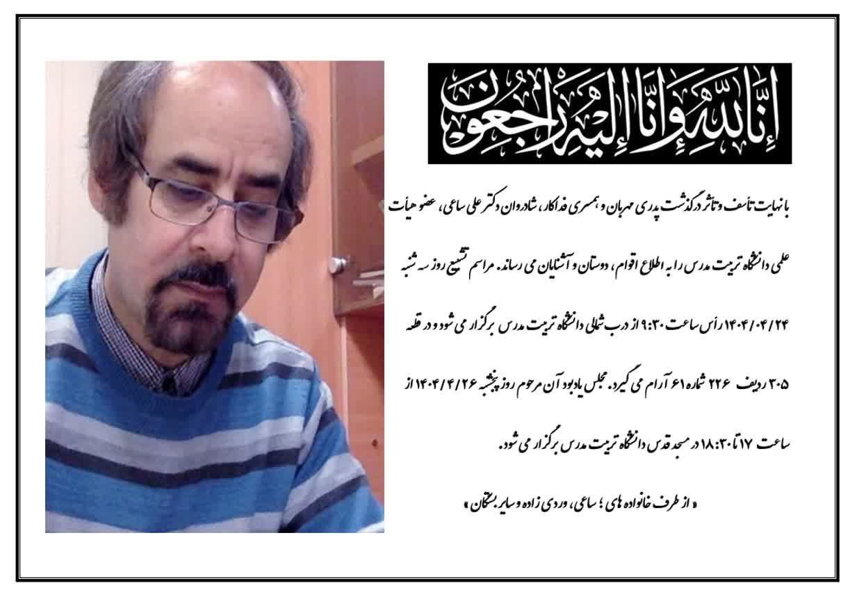 همه چیز امروز زیادی عجیب و غیرواقعی بود، عکس دکتر ساعی را با یک سینی خرما گذاشته بودیم روی میز گروه جامعهشناسی، متقاضیان پذیرش در مقطع دکتری برای انجام مصاحبه به نوبت وارد اتاق گروه میشدند، تسلیت میگفتند، مصاحبه انجام میشد و بعد با برداشتن خرما و قرائت فاتحه خداحافظی میکردند. صبح و عصر امروز برنامه همین بود، هی من منتظر بودم از این کابوس بیدار شوم و بفهمم همهچیز یک خواب عجیب و ترسناک بوده اما همه چیز همانطور ادامه پیدا میکرد.